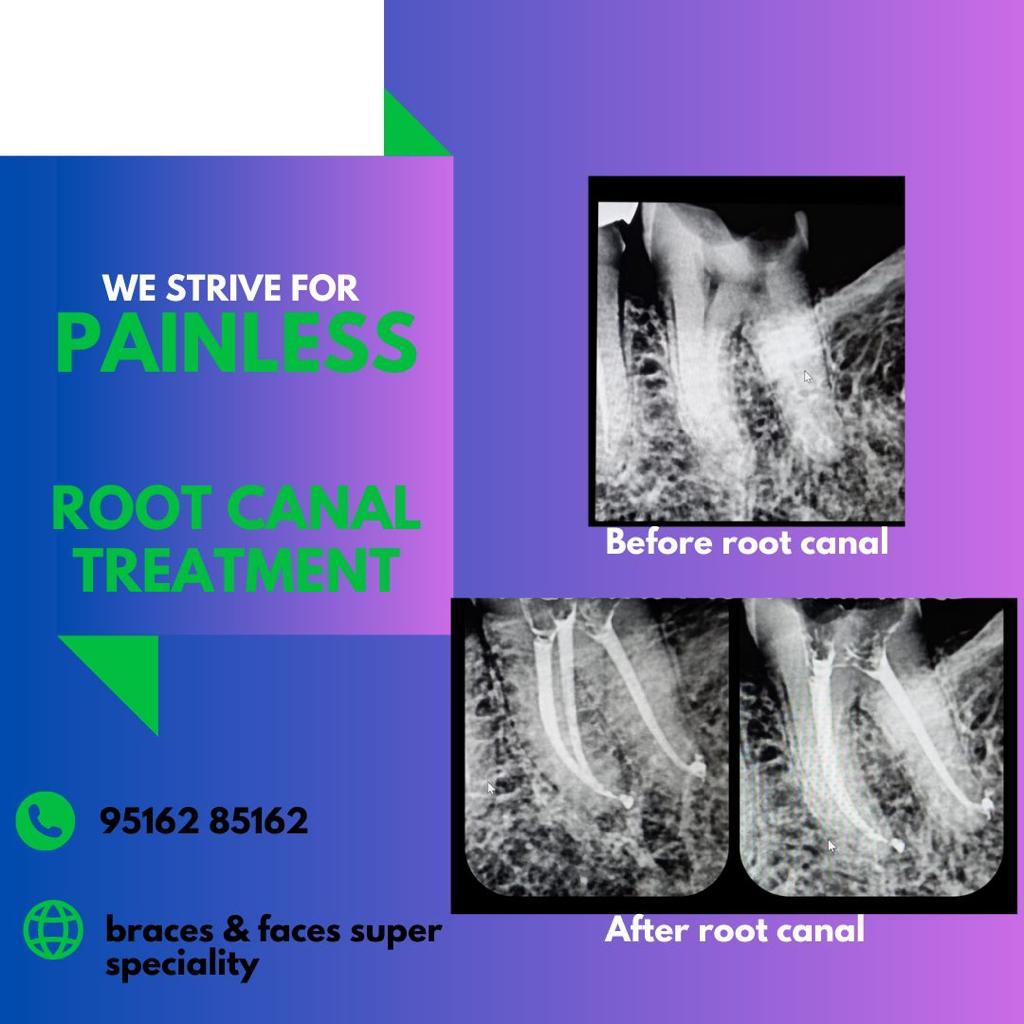 Every tooth is a three-layered structure namely – Enamel, Dentin & Pulp. If the tooth decay is limited to the first two layers, it can be corrected with Filling/ Restoration. In case the tooth decay reaches the third layer and causes inflammation or infection of pulp, an RCT or Endodontic Treatment is needed.We also provide Single Sitting Root Canal Treatment Using an advanced Endodontic technology Single-sitting Root Canal Treatment is performed within an hour. At Braces Faces Superspeciality dental care, dr.swapnil has performed more than 2000+ RCT with painless injection using modern equipment.Book appointment for painless single sitting RCT